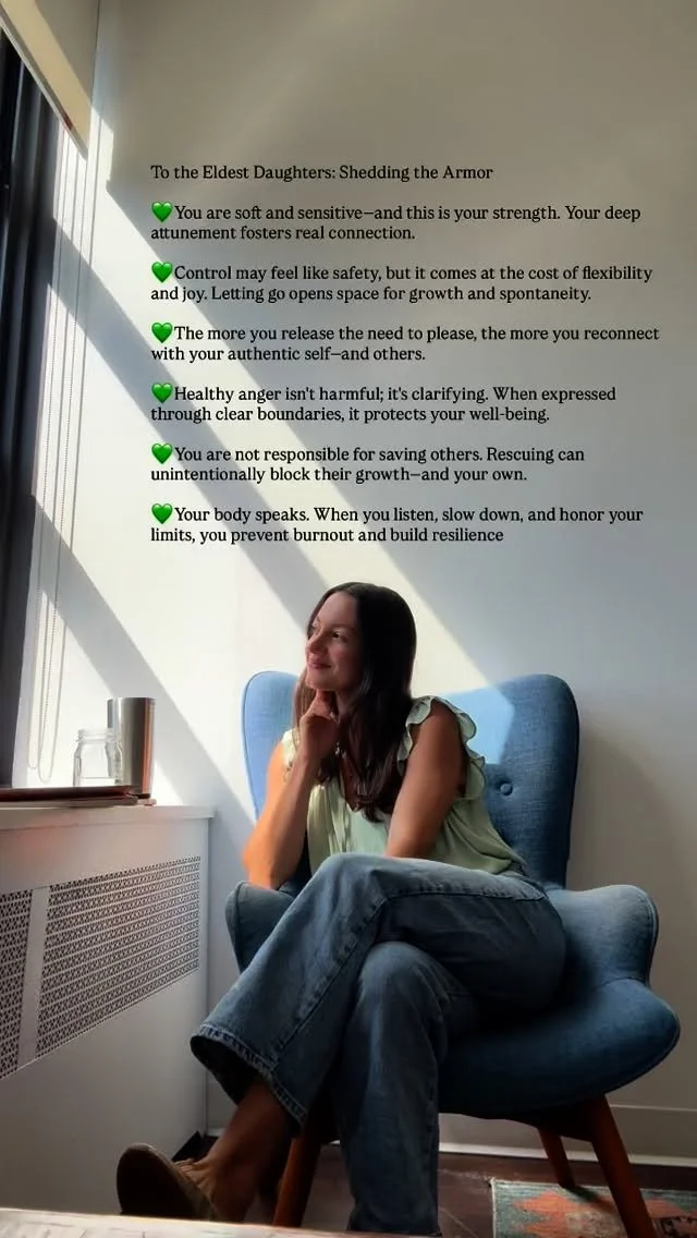 A key part of this journey is setting boundaries. Healthy boundaries are essential for maintaining a sense of self in relationships—especially with family members or loved ones who may have shaped your identity in ways that no longer serve you. When learning to set boundaries, part of the work is developing the ability to tolerate the discomfort of guilt that may arise when you begin to show up differently. It’s about learning that it’s okay to feel like the "bad daughter," "bad son," "bad partner," or whatever label comes up when you make choices that prioritize your own authenticity over others’ expectations.